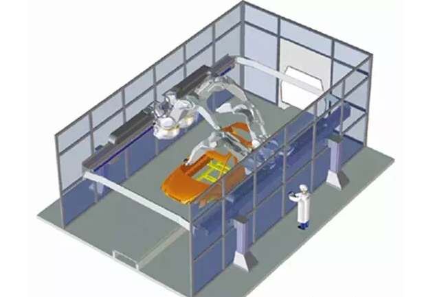 与传统的机械喷涂相比,采用机器人喷涂有2个突出的优点:可以减少大约30%~40%的喷枪数量;提高了喷涂的速度。为了适应高速喷涂,在内表面喷涂和第2层金属漆喷涂时都要采用高速旋转喷枪。 多年以来,汽车车体连续喷涂主要由机械喷涂和手工喷涂2部分组成,机械喷涂完成车体外表面的喷涂工作,内表面如车门闭合处的喷涂则由手工喷涂完成。如果对车体进行3层喷涂时,底漆和金属漆分别在不同的喷涂室进行喷涂,每个车体通常需设置多达30个雾化喷枪喷涂外表面,同时还要设置15个手工喷枪进行手工喷涂。在手工喷涂和第2层金属漆的喷涂过程中,油漆是由空气雾化器雾化的,相比在外表面喷涂时的静电雾化过程,空气雾化器对油漆的雾化效率较低。 采用机器人喷涂 为了追求喷涂过程更大的灵活性和更高的效率,从20世纪90年代起汽车工业开始引入机器人来代替喷涂机械,同时开始使用机器人进行内表面的自动喷涂。 现代汽车工业的迅速发展带来汽车型号的迅速变化和车体设计的不断调整,只有采用机器人才能适应这种频繁变化的生产要求。机器人的作用是控制喷枪,使之在喷涂过程中与喷涂表面保持正确的角度和恒定的距离(一般为200mm)。为了实现这一任务,工程师采用专门的软件对喷涂对象的三维模型进行处理,确定喷枪的移动路径和相应的喷涂参数。然后将这些数据传输给机器人控制器,在整个喷涂过程中控制机器人的动作。一般来说,只有在比较复杂的和要求非常的喷涂过程才需要这样的处理。